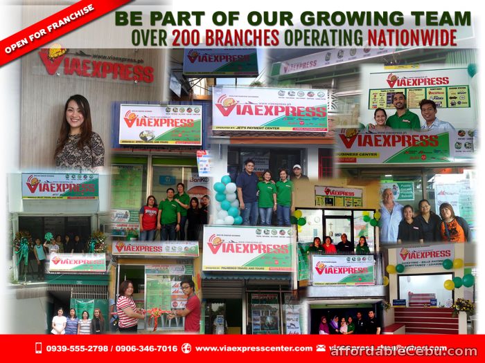 VIAEXPRESS is One of the fastest growing franchise business in the Philippines today, over 200 branches operating nationwide and it has successfully established itself as One Stop Shop Payment Center WE ARE OPEN FOR FRANCHISE 1. Ticketing Services (Local&International) 2. Hotel&Tour Worldwide Packages 3. Loading Station 4. Bills Payment Attend Free Business Seminar call or text: GLOBE 0906 346 7016 SMART 0939 555 2798 Look for Rhea Pictures Share this Ad | |