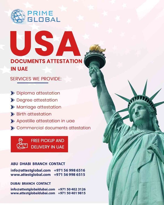 Prime Global Attestation services in abu dhabi, headquartered in Abu Dhabi, is a trusted and professional attestation service provider offering reliable solutions across all Emirates. With extensive experience in handling international documentation, we have successfully assisted more than 20,500 clients by providing efficient, secure, and affordable document attestation services. Our experienced team manages the attestation of a wide range of documents, including educational certificates, marriage certificates, birth certificates, and other personal or commercial documents issued in the United States. To make the process easier for our clients, we also provide free document pickup and delivery services anywhere in the UAE, ensuring a convenient and hassle-free experience from start to finish. The USA certificate Attestation services in abu dhabi process involves several important verification stages to confirm the authenticity of the document. This typically includes notarization in the United States, authentication by the Secretary of State and the US Department of State, followed by verification from the UAE Embassy in Washington, D.C. Once the documents arrive in the UAE, the final step is attestation by the UAE Ministry of Foreign Affairs (MOFA), which officially validates the document for use within the country. Prime Global Attestation services in abu dhabi offers fast, reliable, and transparent attestation services in Abu Dhabi, Dubai, and across the UAE, with minimal documentation requirements and professional support throughout the process. In addition to USA document attestation, we also provide services for more than 100+ countries, including the UK, Canada, Australia, Spain, France, Germany, and Switzerland. For professional assistance, contact us today at +971 542649653 / +971 569986515 or visit https://attestglobal.com/ Our team is ready to help you complete your document attestation quickly and smoothly. For more details, Attestation services in abu dhabi, Attestation services in dubai, Attestation services in uae, & Attestation services in sharjah Pictures Share this Ad | |