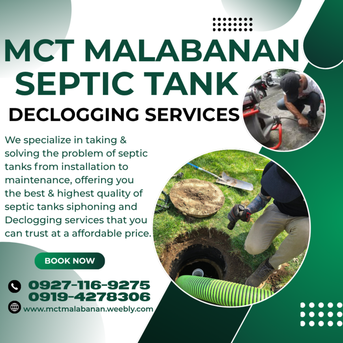 24 Hours Preventive maintenance of all kinds of establishment residential, commercial, industrial For over 15 years of services FOR INQUIRES PLEASE CONTACT US GLOBE: 09271169275 SMART: 0919-427-8306 Please Look for Mr. Torres Website: https://mctmalabanan.weebly.com SERVICES OFFERED: 1. Siphoning of septic sludge from the septic tank. 2. Manual cleaning of septic tank 3. Remove garbage inside septic vault 4. Locate / open & repair septic vault 5. Clear up clogged pipe lines 6. Repiping water lines & sanitary lines 7. De clogging and Drain Price ranges depending in your location and difficulty of work Pictures Share this Ad | |