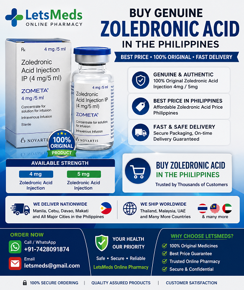 For orders or inquiries, contact LetsMeds: Call/WhatsApp +91-7428091874 or email letsmeds@gmail.com or visit https://www.letsmeds.com/zoledronic-zometa-price-philippines #ZoledronicAcid #ZoledronicAcidPricePhilippines #ZoledronicAcidInjection #ZoledronicAcid5mg #ZoledronicAcid4mg #BuyZoledronicAcid #LetsMeds #OnlinePharmacy #PhilippinesPharmacy #CancerMedicine Pictures Share this Ad | |